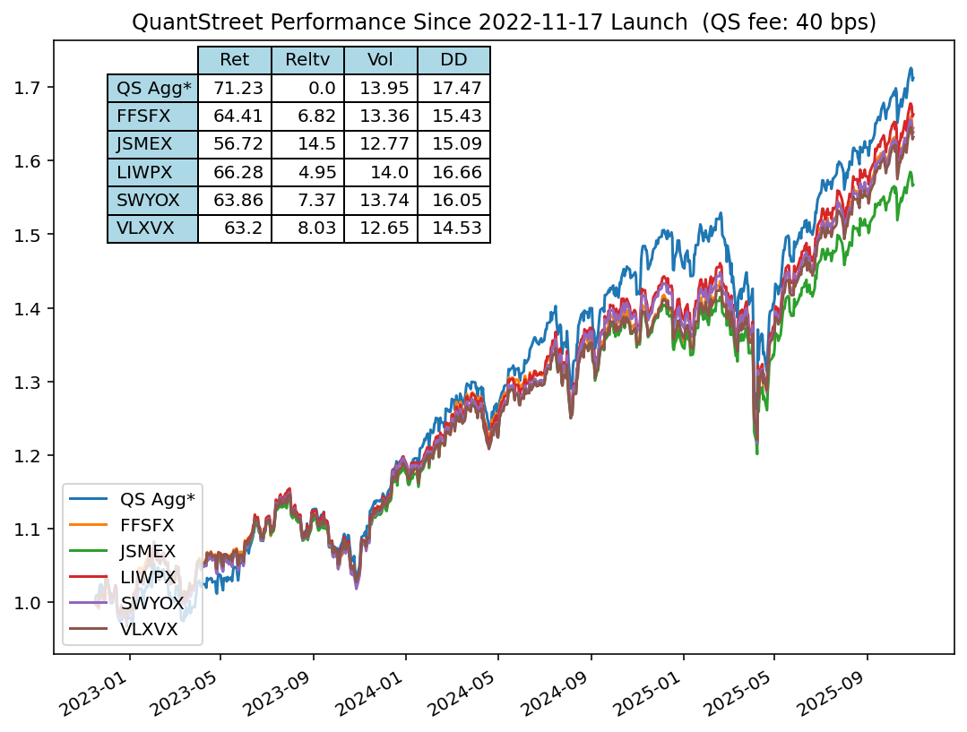 11/01/2025 — The following analysis shows the performance of QuantStreet’s separately managed account strategies against benchmarks. The analysis starts on the launch date of each separately managed account strategy.